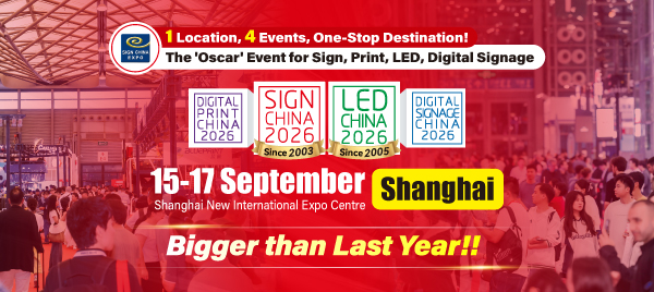 Save the date! The SIGN CHINA 2026 Shanghai Edition—held alongside Digital Printing China, LED CHINA, and Digital Signage China—returns from 15–17 September.